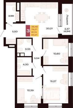 Комната в 3-к квартире, 12м², 2/10 этаж